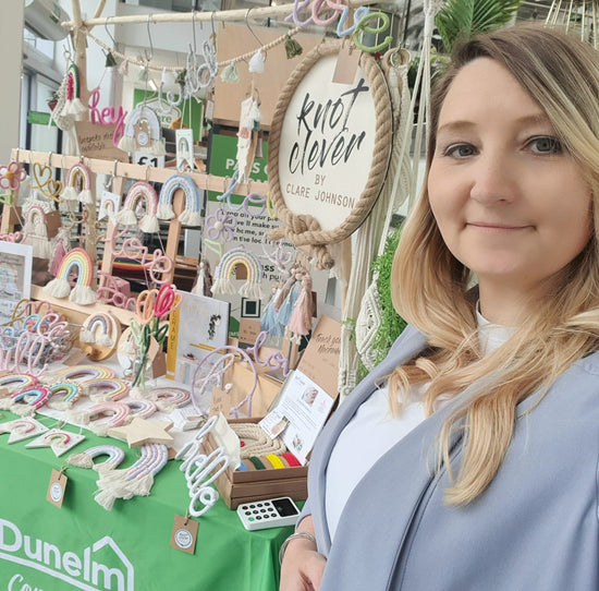 Facebook: @Knot.CleverBeautiful handmade macrame products including rainbows, plant hangers and decorations.