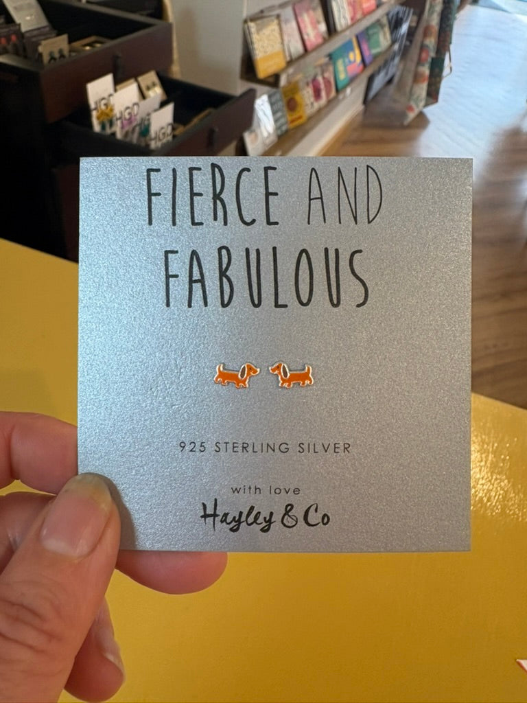 Beautiful, delicate sterling silver studs by Hayley & co. Mounted on grey card with a fun message, the earrings are packaged in an organza bag.