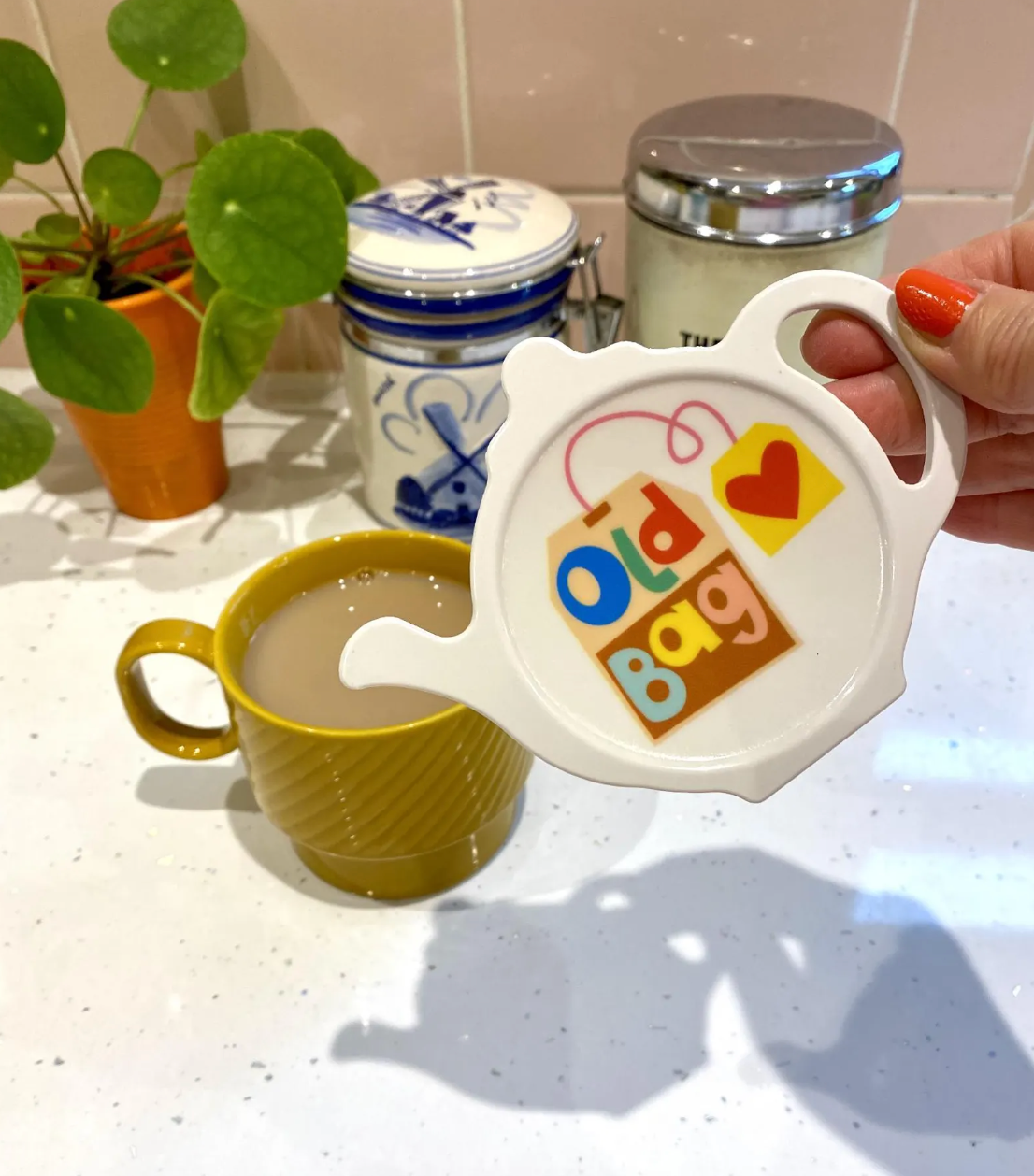 Available in 2 designs, "tea bag" or "old bag". These tea bag tidies are durable and hard wearing. They are easily wiped clean and colour fast, and can go in the dishwasher too.