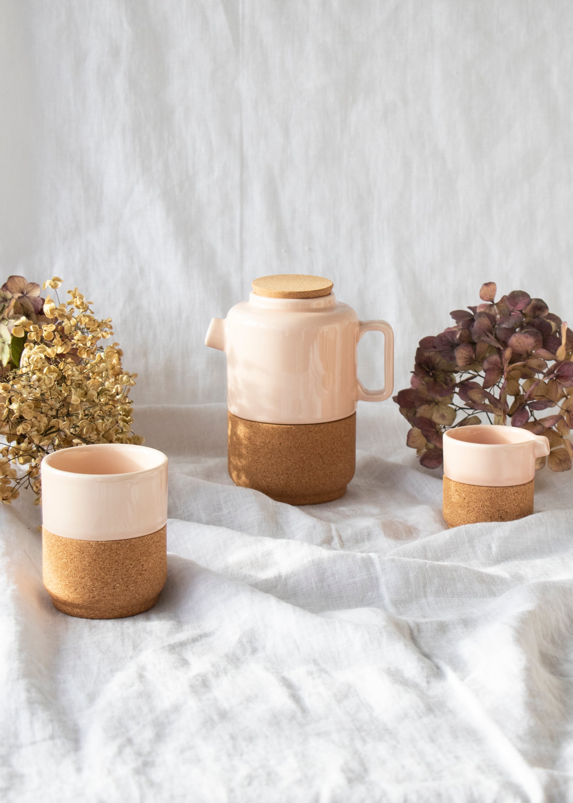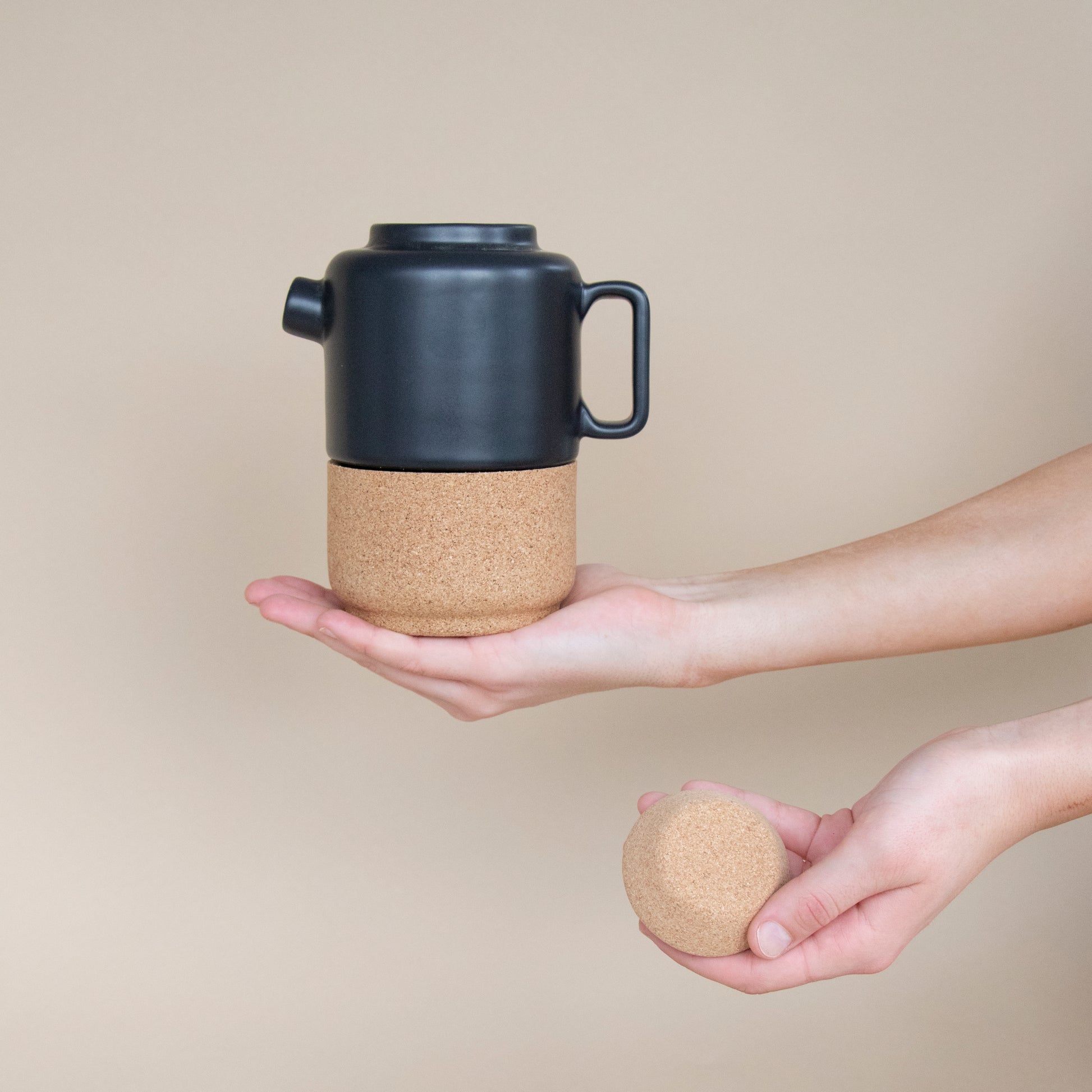 A lovely teapot to match the cork and pottery range. The perfect size for two people. Pours well, beautifully designed, easy to clean and keeps tea warm with the insulating cork. The cork and ceramic parts sit well together and easily come apart for practicality and ease of cleaning.